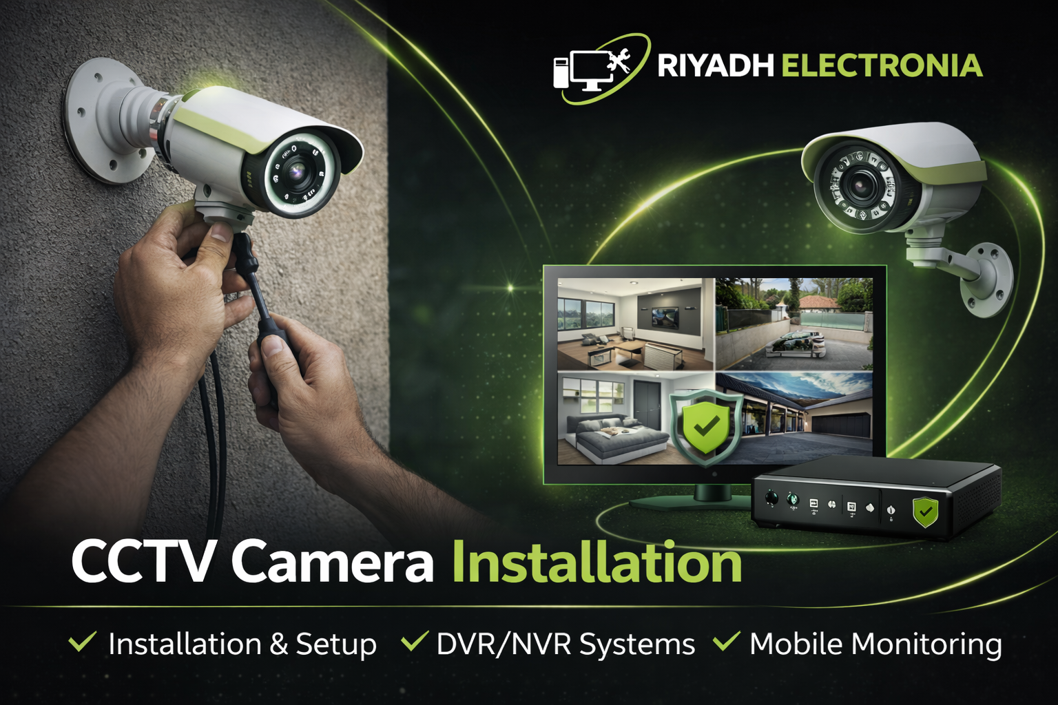 Protect your home or business with professional CCTV installation services in Riyadh. We install modern security camera systems with clean wiring and reliable performance.