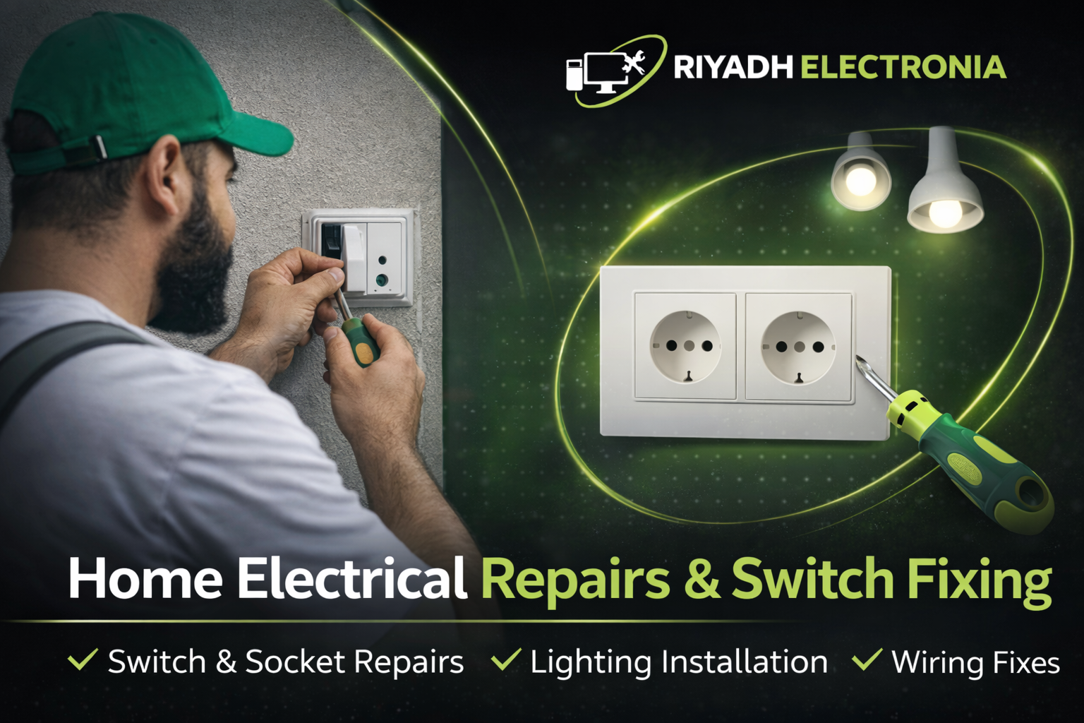 Riyadh Electronia provides small electrical repair services for homes and shops. From faulty switches to lighting issues, we handle it safely and professionally.